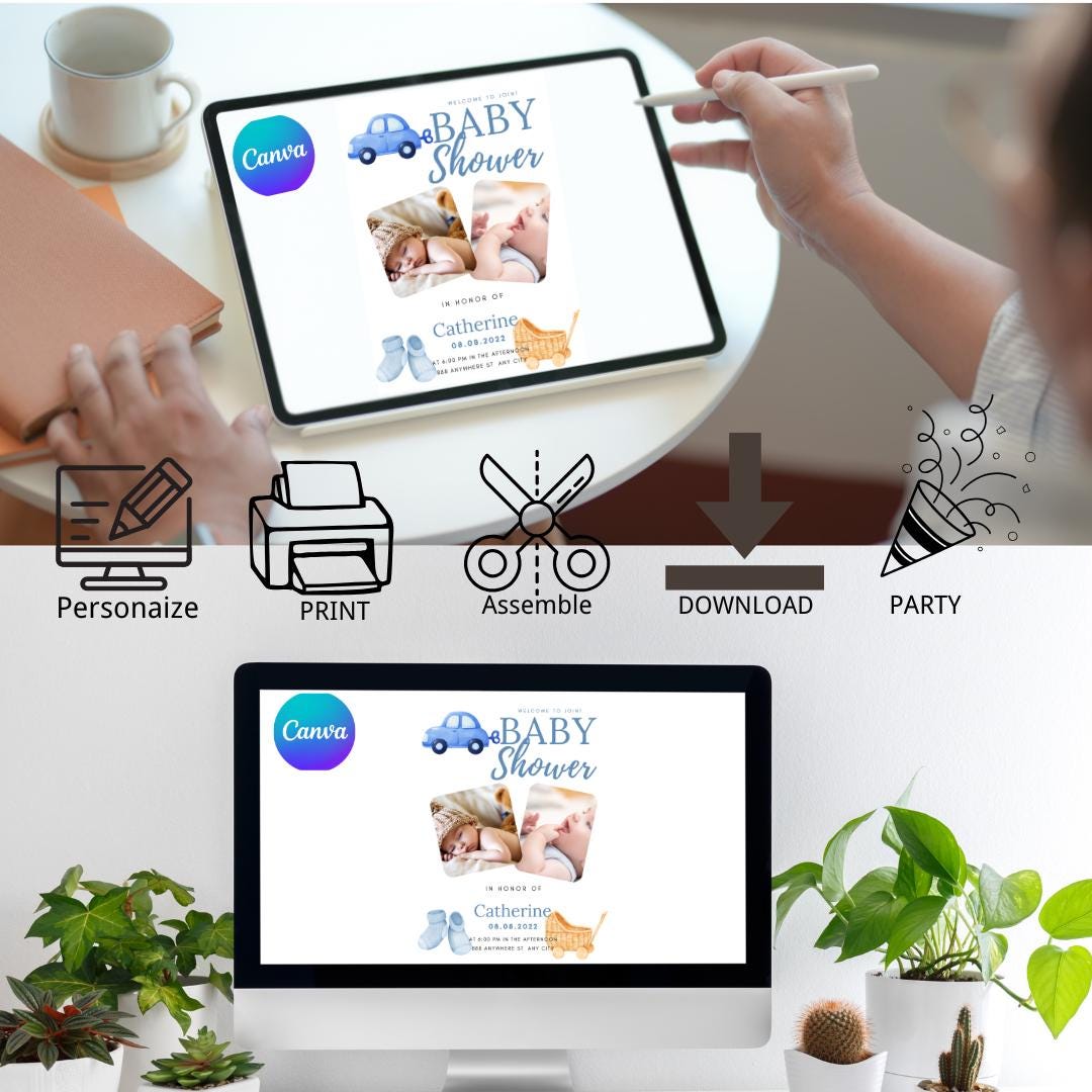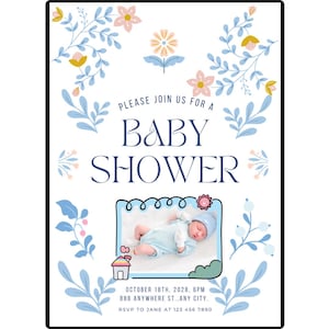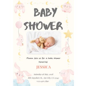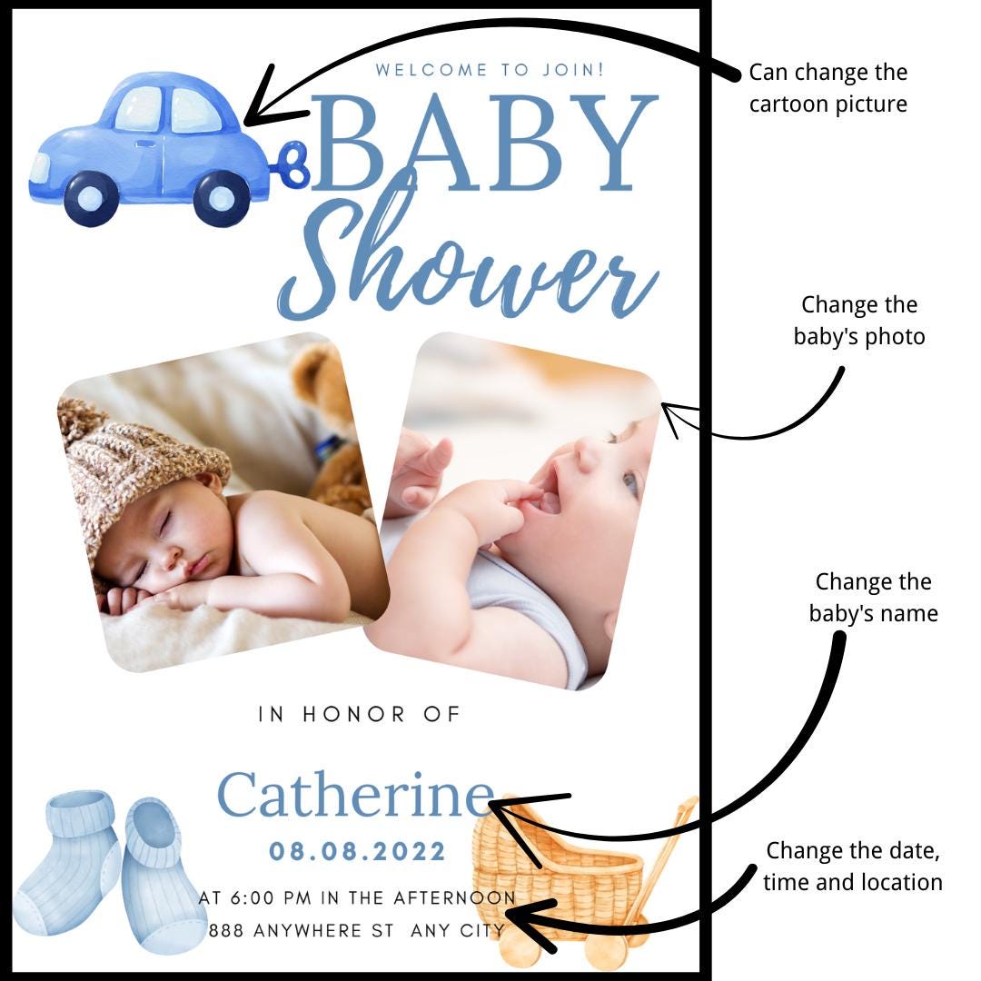 Minimalist Baby Shower Invitation Template: Editable Canva Card (Digital Download A3 Size)