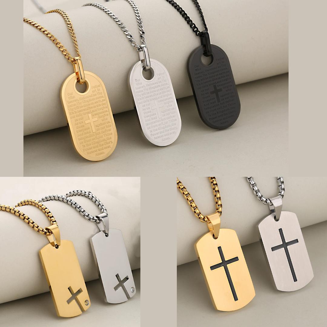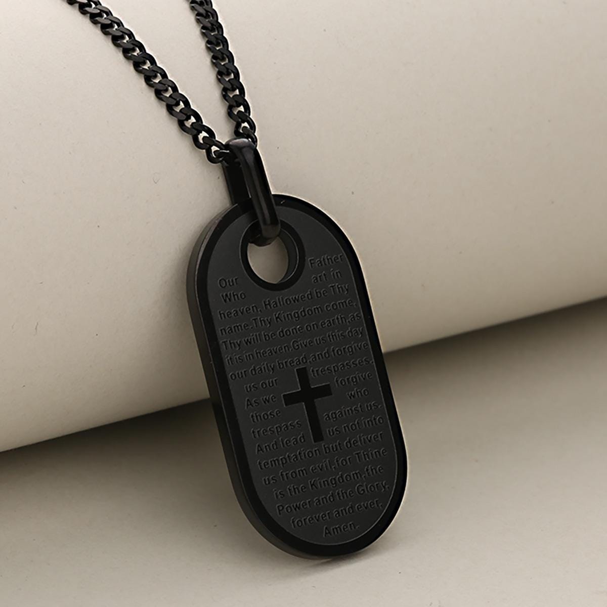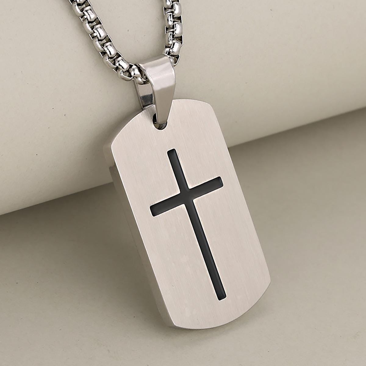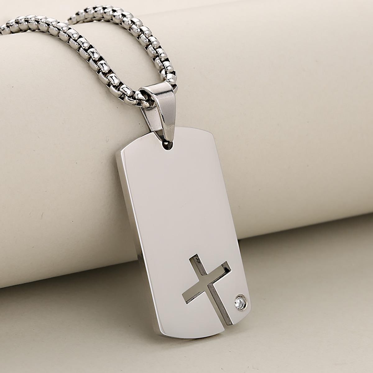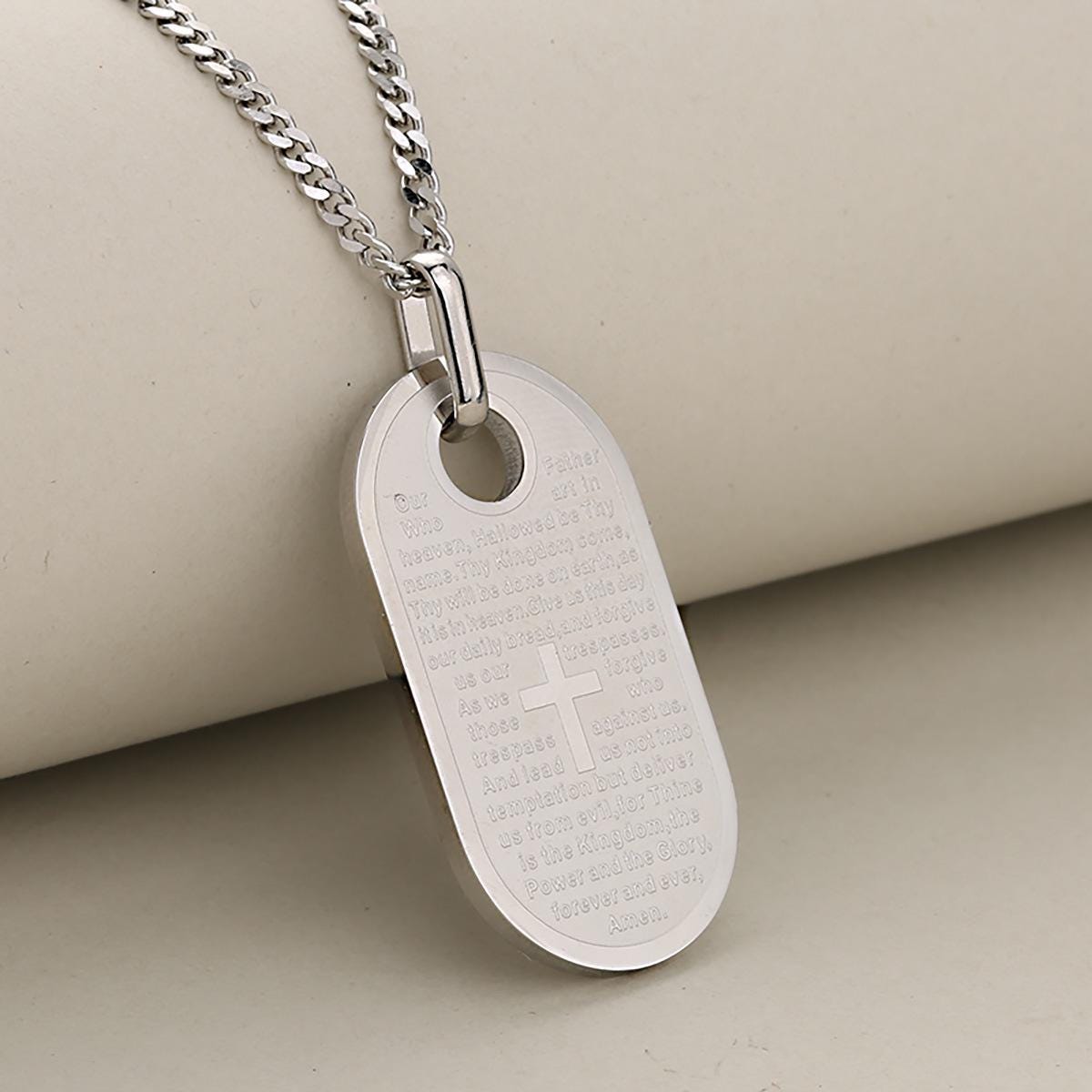 1. Cross design - The cross pattern symbolizes devout faith and is suitable as a spiritual symbol accessory for men. 2. Personalized customization options - The front/back text can be customized (horizontal/vertical), and the font (handwritten or printed) can be selected. Each piece can be customized as per demand. The engraved content can be names, dates, Bible inspirations, etc. 3. High-quality stainless steel material - Mirror-polished stainless steel is crafted, durable, does not fade, and does not rust, suitable for daily wear. 4. Perfect gift choice - Includes gift packaging, ideal for giving to fathers, husbands, boyfriends, soldiers, church brothers. 5. Appropriate size - The chain is 24 inches, comfortable to wear, suitable for various occasions: birthday, baptism, anniversary, etc.