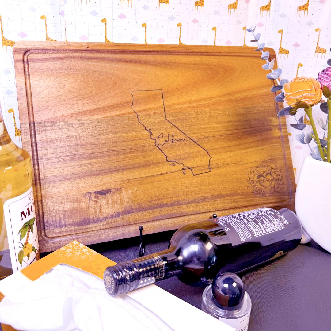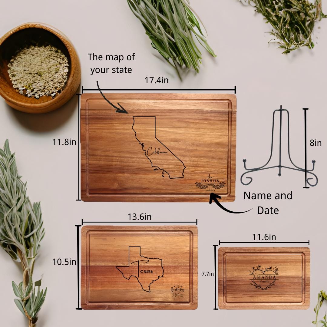 Personalization: The shape and name of the state, date, ready-to-eat board, and carved wooden chopping board: We offer you 100% natural cypress wood ready-to-eat chopping boards. This rare and rustic chopping board is made by hand-cutting. Its beautiful and high-quality quality adds a unique touch to your kitchen.