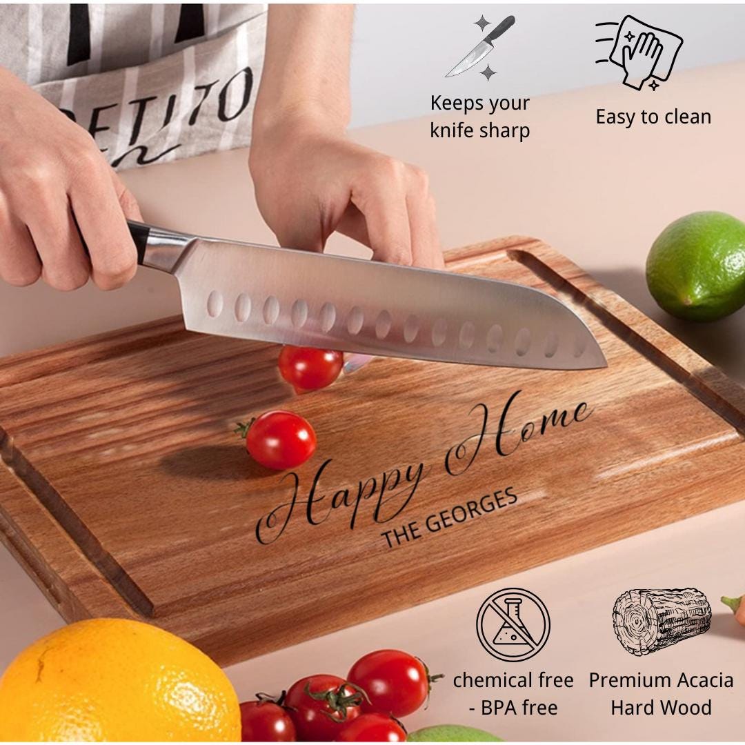 Custom wedding or wedding banquet gift: These carved chopping boards are an excellent gift for newlyweds. Whether for wedding registration or Christmas, they can be used as a serving board, a ready-to-eat dish board, or as a decorative item.